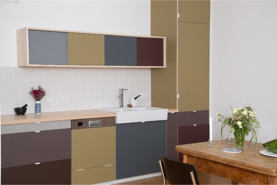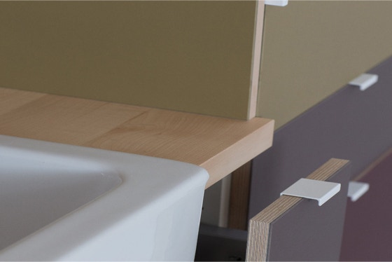 Eine einfache Küchenzeile in einer offenen Wohnküche. Selbstbewusst–aber nicht laut–bildet sie den Mittelpunkt der Wohnung und überzeugt dabei durch ihre Schlichtheit und die wertigen langlebigen Materialien.