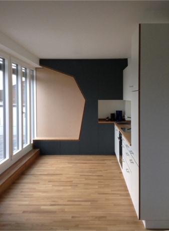 Die Küchenzeile hält sich derweil dezent zurück und überzeugt lieber still durch ihre durchdachte Aufteilung und einfaches, alltägliches Funktionieren.