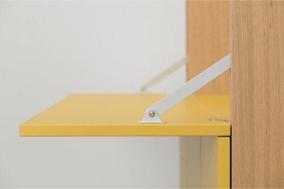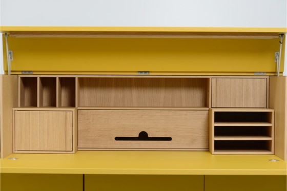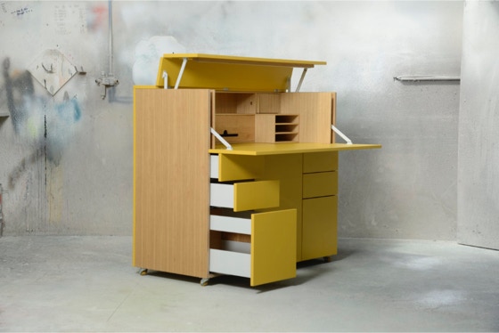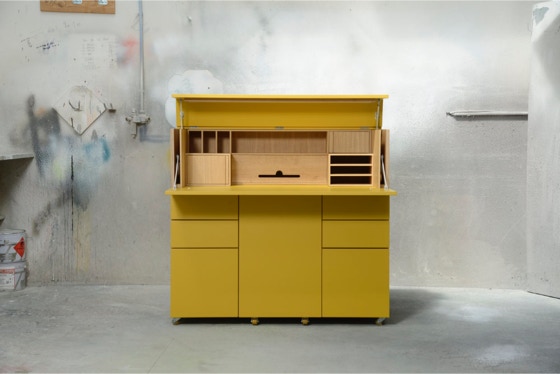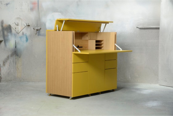 Ein mobiles Arbeitsmöbel mit Platz für Ordner, Drucker und alles, was man zum Arbeiten braucht.